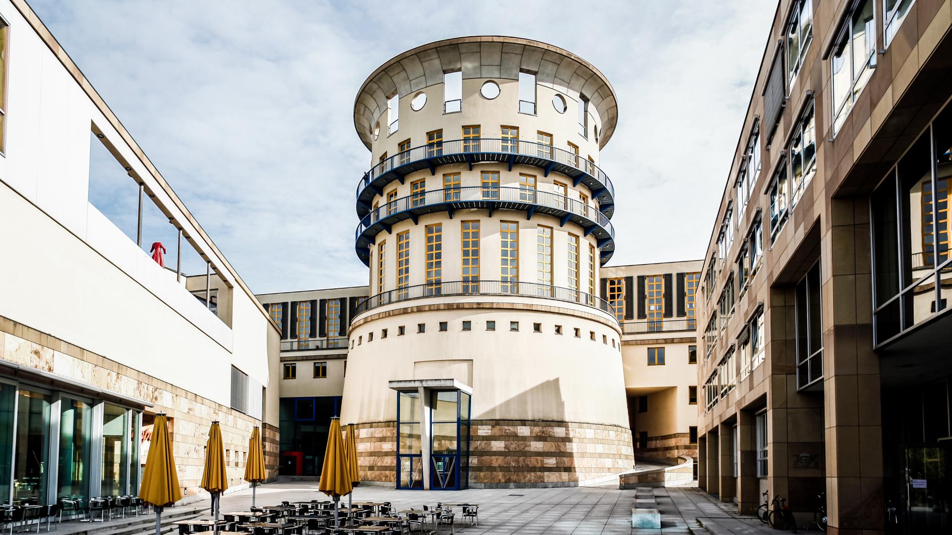 The approximately 80,000 concertgoers experience this program diversity in the attractive concert halls of the Stirling Building in the center of the "Culture Mile": the Concert Hall (418 seats), the Chamber Music Hall (180 seats), and the Orchestra Rehearsal Room (99 seats). As the only German music and theatre university, the HMDK has its own teaching and learning theatre – the Wilhelma Theatre