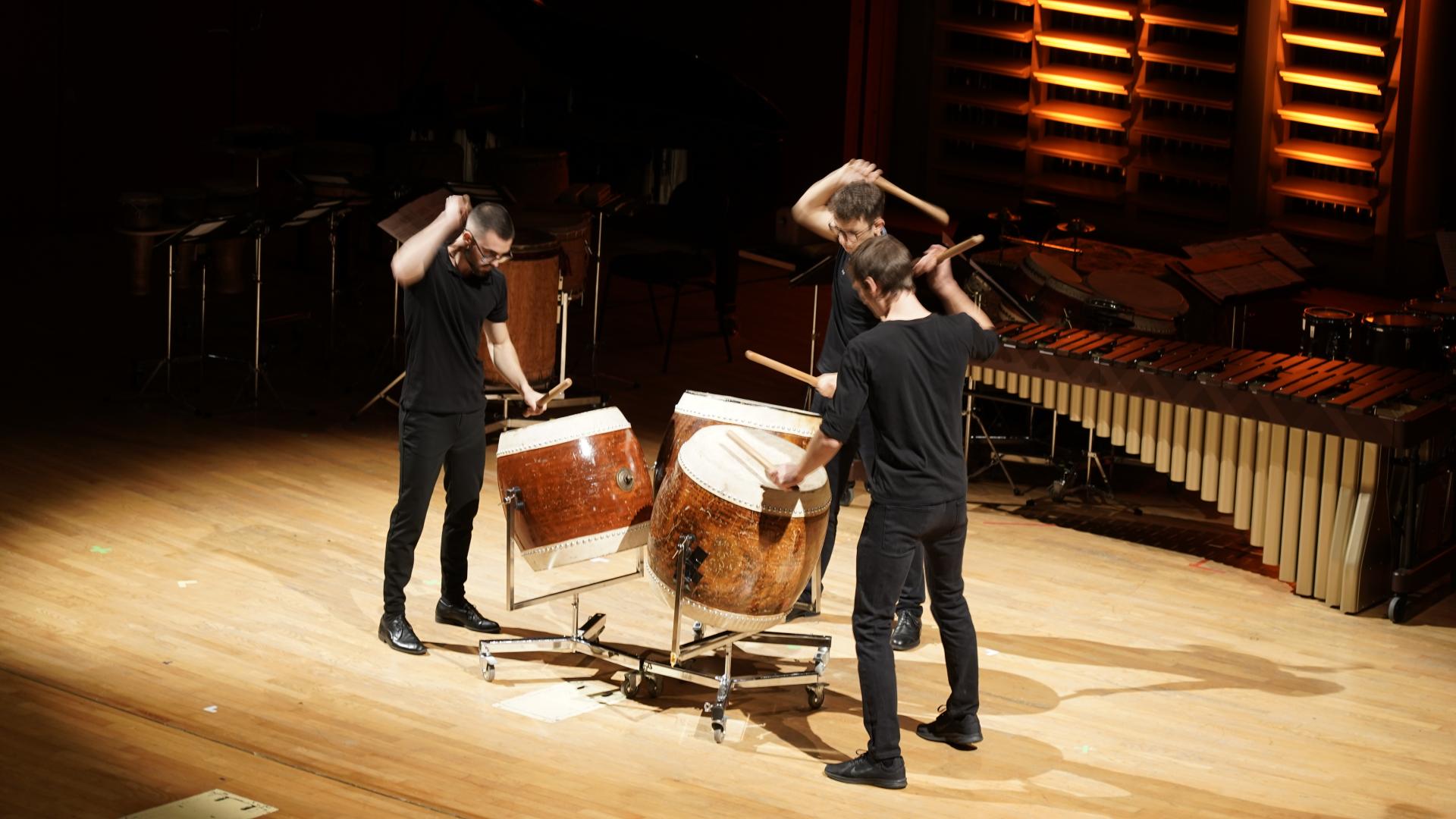 The title TalkingDrums refers to both an ensemble and a project: It is the name of the student percussion ensemble at the State University of Music and Performing Arts Stuttgart (HMDK Stuttgart), as well as a three-stage music education project with the same concert program.