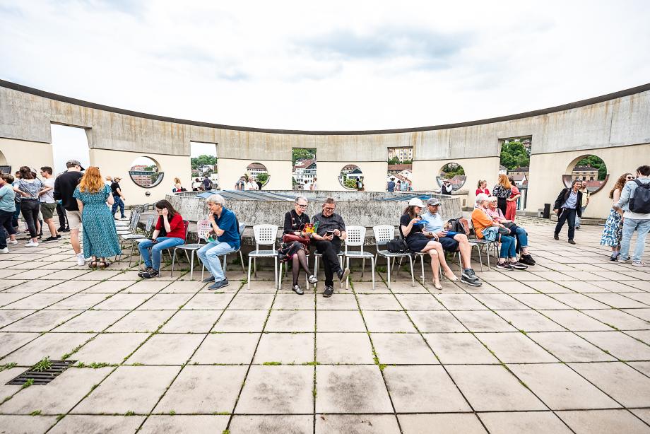 The most beautiful view over Stuttgart's "Culture Mile" and city center can be enjoyed from the tower terrace of the HMDK. A pure 360-degree panorama. Whether it's the view of the state theatres, the neighboring parliament building, the distant construction site of S21, the collegiate church, or the Breuninger district - everything can be seen from the daily open tower terrace. A unique place of relaxation in the heart of the Culture Mile. Please note that access to the terrace from the 11th floor is only possible via stairs. Let your gaze wander over Stuttgart and, of course, you are warmly invited to attend one of our events in the various concert halls.