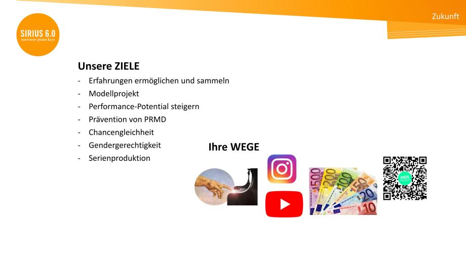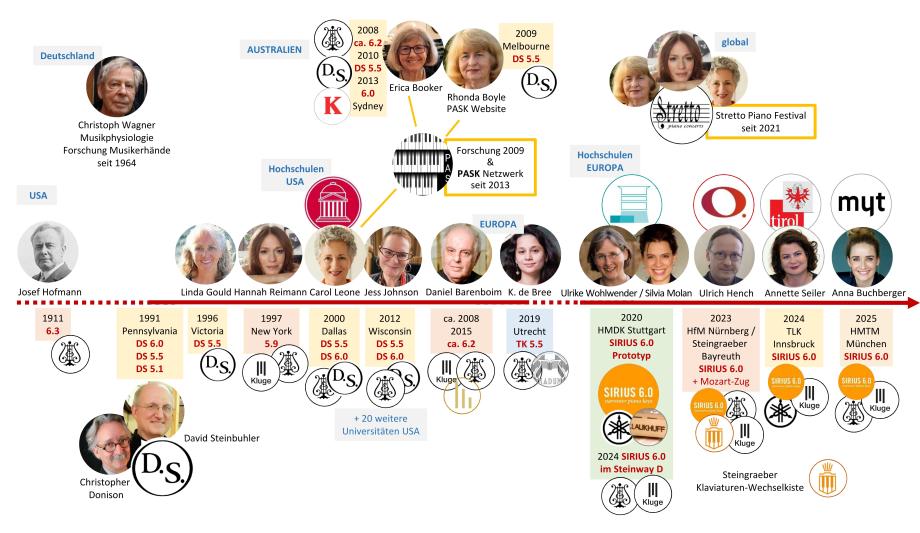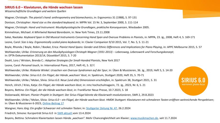 Die Zukunftsinitiative SIRIUS 6.0 ist mit der globalen Initiative PASK (Pianists for Alternatively Sized Keyboards) vernetzt. Gäste aus dem In und Ausland sind herzlich willkommen. SIRIUS 6.0 ist auf (inter)nationalen klavierpädagogischen und musikermedizinischen Tagungen präsent. Gerne stehen wir Hochschulen und Pianist*innen beratend zur Seite, die einen Flügel oder ein Klavier mit einer Klaviatur mit schmaleren Tasten ausstatten möchten.