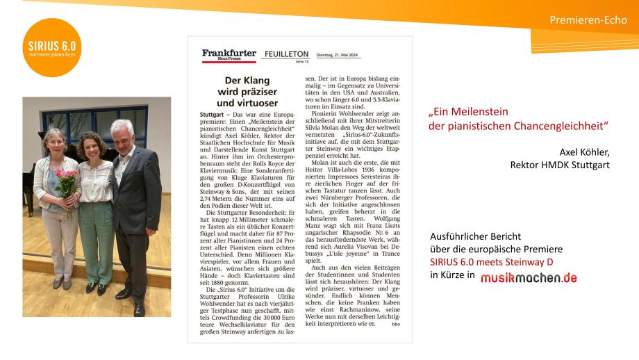 Die schmalere SIRIUS-Tastatur entfaltet von der Stuttgarter Musikhochschule aus Wirkung – nmz 11/24, von Bettina Boyens