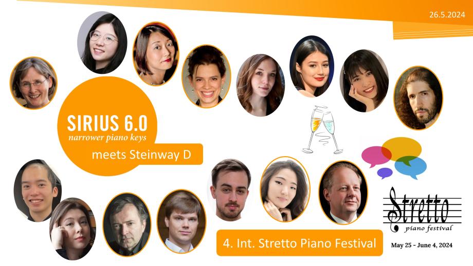 Unter dem Motto Narrow Keys … Broad Minds … No Boundaries geht seit 2021 das Internationale Stretto Piano Festival über die Bühne. Das Festival mit Zentrum New York startete während der Corona Pandemie virtuell und bietet inzwischen jedes Jahr eine Vielfalt an live Konzerten rund um den Globus, natürlich auch immer in Stuttgart. Die weltweit teilnehmenden Pianist*innen spielen etwa zur Hälfte auf 6.0 Klaviaturen und zur Hälfte auf 5.5 Klaviaturen (Oktave 24 mm kürzer). Bei letzterer werden Dezimen zu Nonen und Nonen zu Oktaven.