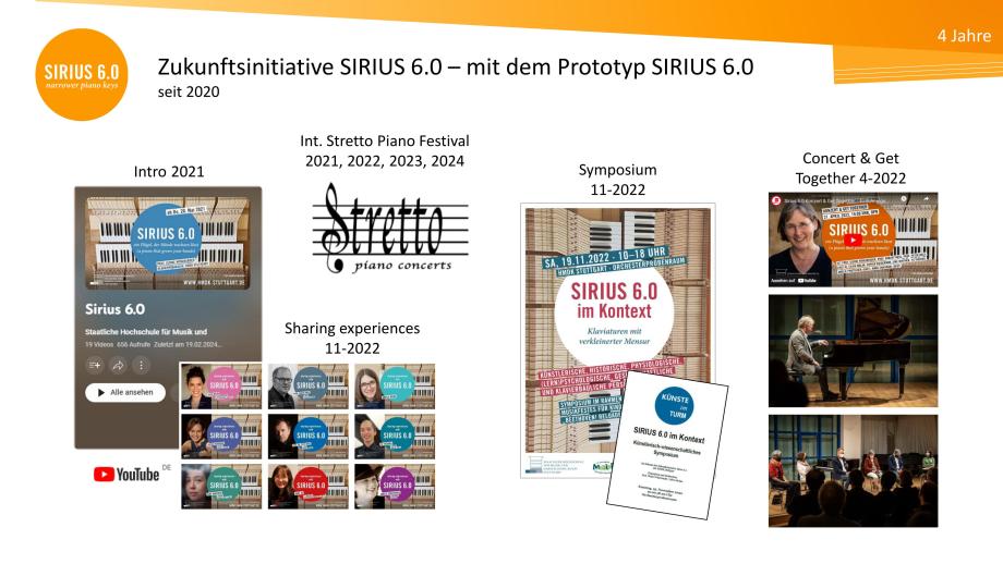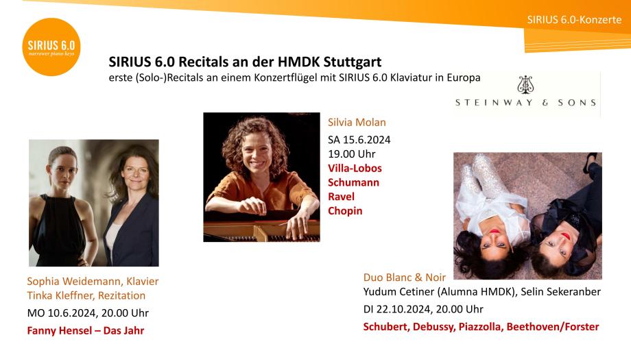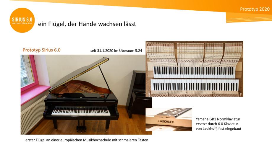 Die Zukunftsinitiative SIRIUS 6.0 der HMDK Stuttgart wurde 2020 von Prof.in Ulrike Wohlwender und Silvia Molan gegründet. Sie ermöglicht und koordiniert Erfahrungen und Erfahrungsaustausch auf Klaviaturen mit schmaleren Tasten und widmet sich deren Verbreitung und Weiterentwicklung. Übergeordnete Ziele sind die größere Entfaltung von künstlerischem Potential, eine höhere Effizienz von Übezeit, Chancengleichheit, Gendergerechtigkeit, die Prävention von spielbedingten Überlastungssyndromen sowie die Ermutigung des weltweiten Klavierbaus zu Serienproduktion. Nach der HfM Nürnberg (2023) haben sich inzwischen auch das Tiroler Landeskonservatorium Innsbruck (2024) und die Hochschule für Musik und Theater München (2025) der Zukunftsinitiative SIRIUS 6.0 angeschlossen. Die Klaviermanufakturen Steingraeber Bayreuth, August Förster und Bechstein bieten ihre Flügel und Klaviere mittlerweile optional mit SIRIUS 6.0 Klaviaturen an. Höchste Expertise mit Umbauten von Norm- auf SIRIUS 6.0-Klaviaturen haben außerdem Harald Schlecker (Waiblingen) und Piano Fischer (Stuttgart/München).